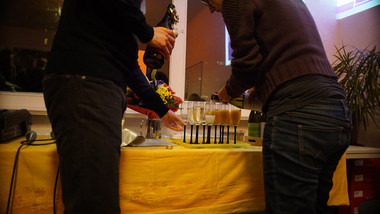 Es herrscht eine vertraute, fast schon familiäre Atmosphäre zum Jubiläum in der Konfliktagentur. Man hat den Eindruck, hier kennt und mag jeder jeden. Es wird angestoßen, zusammen gegessen, gelacht und geredet, wobei das Thema Nummer eins die Zukunft der Konfliktagentur ist.