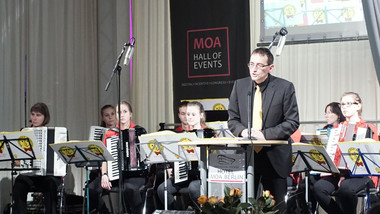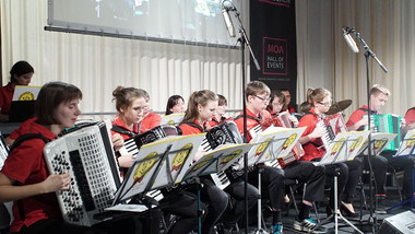 30. Oktober 2015. Unter der großen Glassäule im Atrium vom Hotel MOA Berlin sitzen 220 überwiegend ältere Menschen und unterhalten sich angeregt an ihren Tischen. Das Licht wird gedimmt und der Blick der Besucher schweift ans Ende des Saales, wo ein langsam anschwellender Ton von 20 Ziehharmonikas den Beginn der Veranstaltung markiert. Die Menge lauscht gespannt, wie das Akkordeonorchester der Musikschule Fröhlich mit klassischen Liedern, aber auch Neuinterpretationen aktueller Hits den Raum mit der Glaskuppel verzaubert.