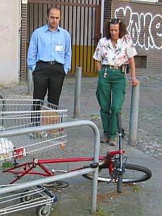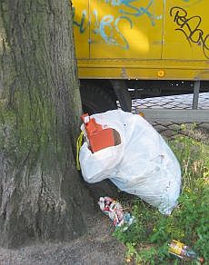 Auf dem Spielplatz am Nordufer ist alles in Ordnung, dieses Mal liegen dort keine benutzten Einwegspritzen. Die d�rften die Kiezl�ufer auch nicht selbst entsorgen � zu gro� ist die Gefahr, sich zu verletzen. �Das ist Sache der Polizei,� sagt Manuel, �dann rufen wir die.� Wir laufen weiter Richtung Nordufer. Dort hatten sie erst letzte Woche ein halbe Wohnungseinrichtung am Stra�enrand gefunden. �Die Leute sehen, dass irgend jemand Ger�mpel hingestellt hat und dann packen sie ihres noch dazu� meint Barbara. Deshalb ist es gut, die BSR auf dem Laufenden zu halten. So k�nnen die Sperrm�llhalden gar nicht erst wachsen.