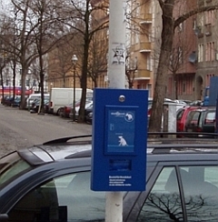 Aus diesem Grund wurde das Projektb�ro "stadt&hund" vom Quartiersmanagement beauftragt, ein bereits in anderen Kiezen funktionierendes Konzept auch im Sprengelkiez umzusetzen. Nach einer Hundehaufen-Bestandsaufnahme im Januar wurden jetzt zw�lf blaue Beutelspender installiert. Aus diesen k�nnen Hundehalter kostenfrei T�ten entnehmen, damit die Hinterlassenschaft ihres Hundes aufnehmen und in die vorhandenen Abfalleimer entsorgen. Ein im Kiez verteilter Flyer informiert �ber die Standorte der Spender und nennt ein paar gute Argumente f�r das Benutzen der Beutel, z.B. dass nicht entsorgter Hundekot auf den Gehwegen Gesundheit und Umwelt gef�hrdet und den Zorn der Anwohner wecken kann.